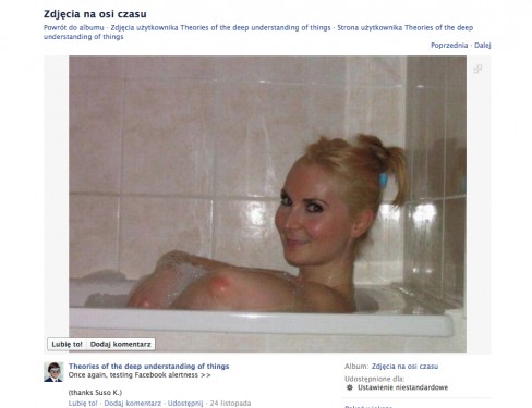 Facebook nie zauważył różnicy między łokciem, a kobiecą piersią. Program, który ma uniemożliwić pojawianie się pornografii na portalu, zaliczył zdjęcie młodej kobiety w wannie jako ostrą pornografia. Zdjęcie zablokował, a zainteresowanym wysłał ostrzeżenie.